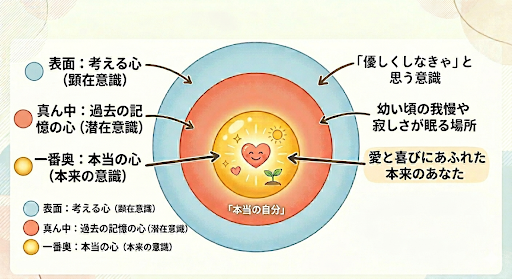 ・表面:考える心(顕在意識)優しくしなきゃ